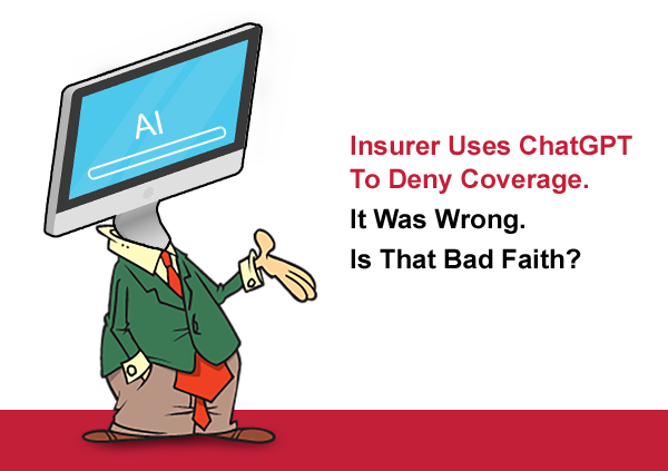 In my view, an insurer that uses an artificial intelligence program to ask a legal-based coverage question, and then uses the answer to improperly deny coverage – especially with all of the known flaws in the application’s accuracy – is unlikely to get the benefit of having acted reasonably for purposes of defeating a bad faith finding. To the contrary, such practice is likely to be tantamount to having done no research, as was the case in Constr. Assocs. of Spokane.