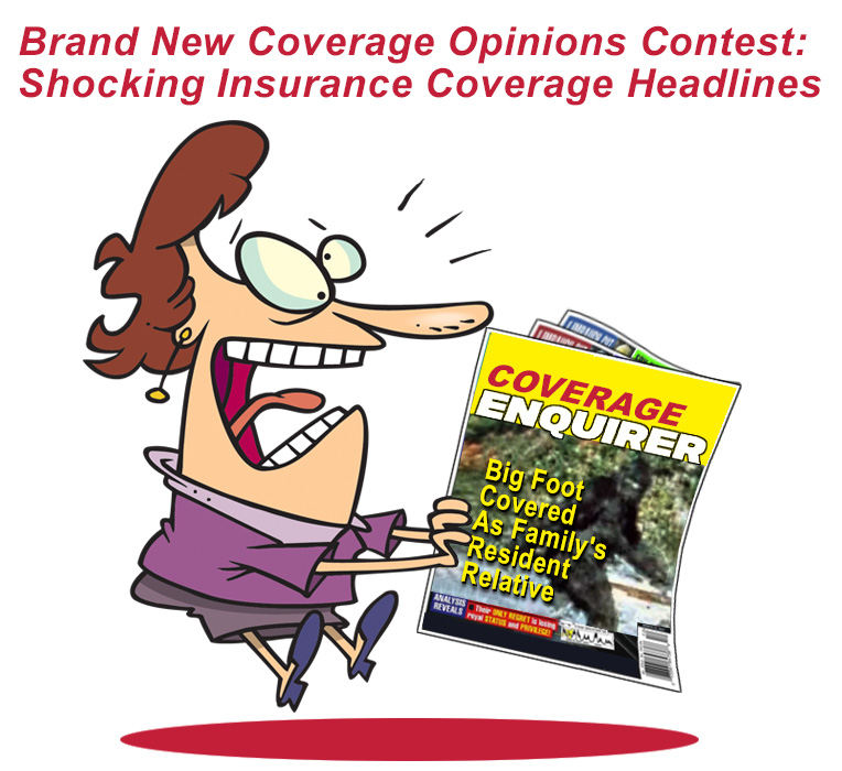 And then it hit me -- A Coverage Opinions contest: Outlandish insurance coverage headlines that you would see on the cover of the Coverage Enquirer, an insurance coverage supermarket tabloid.