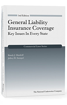 General Liability Insurance Coverage: Key Issues In Every State See for yourself why so many find it useful to have, at their fingertips, a nearly 800-page book with just one single objective -- Providing the rule of law, clearly and in detail, in every state (and D.C.), on the liability coverage issues that matter most. www.InsuranceKeyIssues.com     |