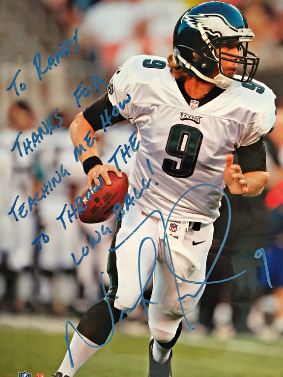 The Eagles will win Super Bowl LII also because of their explosive offense. As you can see, Eagles QB, Nick Foles, learned from the best! I taught him everything I know about football – “Ok, go down to the fire hydrant and cut right and the (Nerf) ball will be there.” [FYI – Nick was a great sport when I asked him to write this silly thing when sighing the picture.] |