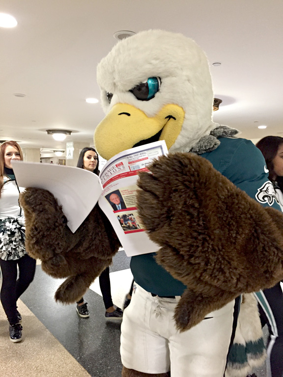The Eagles will win Super Bowl LII because of their crushing defense. It is so dominate that even Swoop, its loveable mascot, is focused on coverage. [No, Swoop does not read Coverage Opinions to learn about snowball insurance.] |