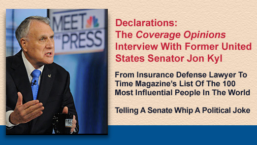 Arizona Governor Doug Ducey recently appointed former Arizona Senator Jon Kyl to fill Senator John McCain’s seat until a special election is held in 2020 (although Kyl has not committed to serving past the end of this session). I had the privilege of interviewing Senator Kyl for the September 30, 2015 issue of Coverage Opinions. We discussed his long career, from insurance defense layer to Senate Minority Whip to attorney at Covington & Burling.