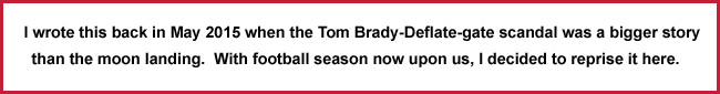 Deflate-gate dialogue began on May 6th following the release of the “Investigative Report Concerning Footballs Used During The AFC Championship Game On January 18, 2015.” That’s the 243 page report, prepared by the NFL’s lawyer, Ted Wells, of his investigation to get to the bottom on the Deflate-gate story.
