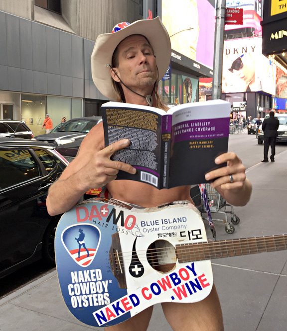 The iconic Times Square Naked Cowboy is a smart guy. He doesn’t want to go bare in the event he suffers any losses standing out there at 45th and Broadway. This is why he reads General Liability Insurance Coverage – Key Issues In Every State.